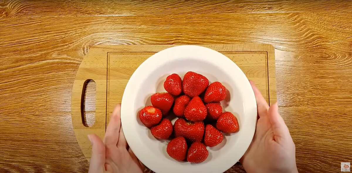 Для приготовления понадобится 250 г свежей клубники. Важно тщательно промыть ягоды и удалить зеленые хвостики, а затем нарезать их на небольшие кусочки. Далее клубнику нужно поместить в морозильник на два часа, чтобы она хорошо заморозилась.