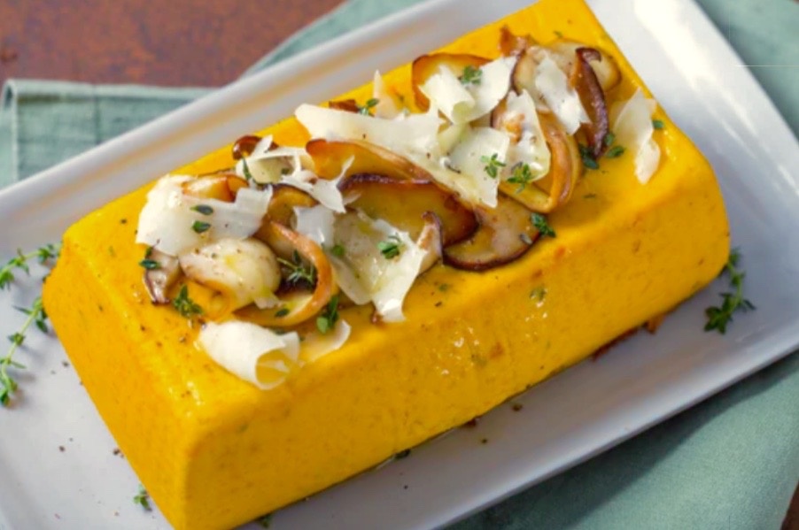 Эта запеканка обладает удивительной текстурой и насыщенным вкусом благодаря грибному соусу. Мягкость тыквенного флана обеспечивается запеканием на водяной бане, а специи добавляют аромата: не забудьте про мускатный орех и тимьян, или используйте свои любимые травы.