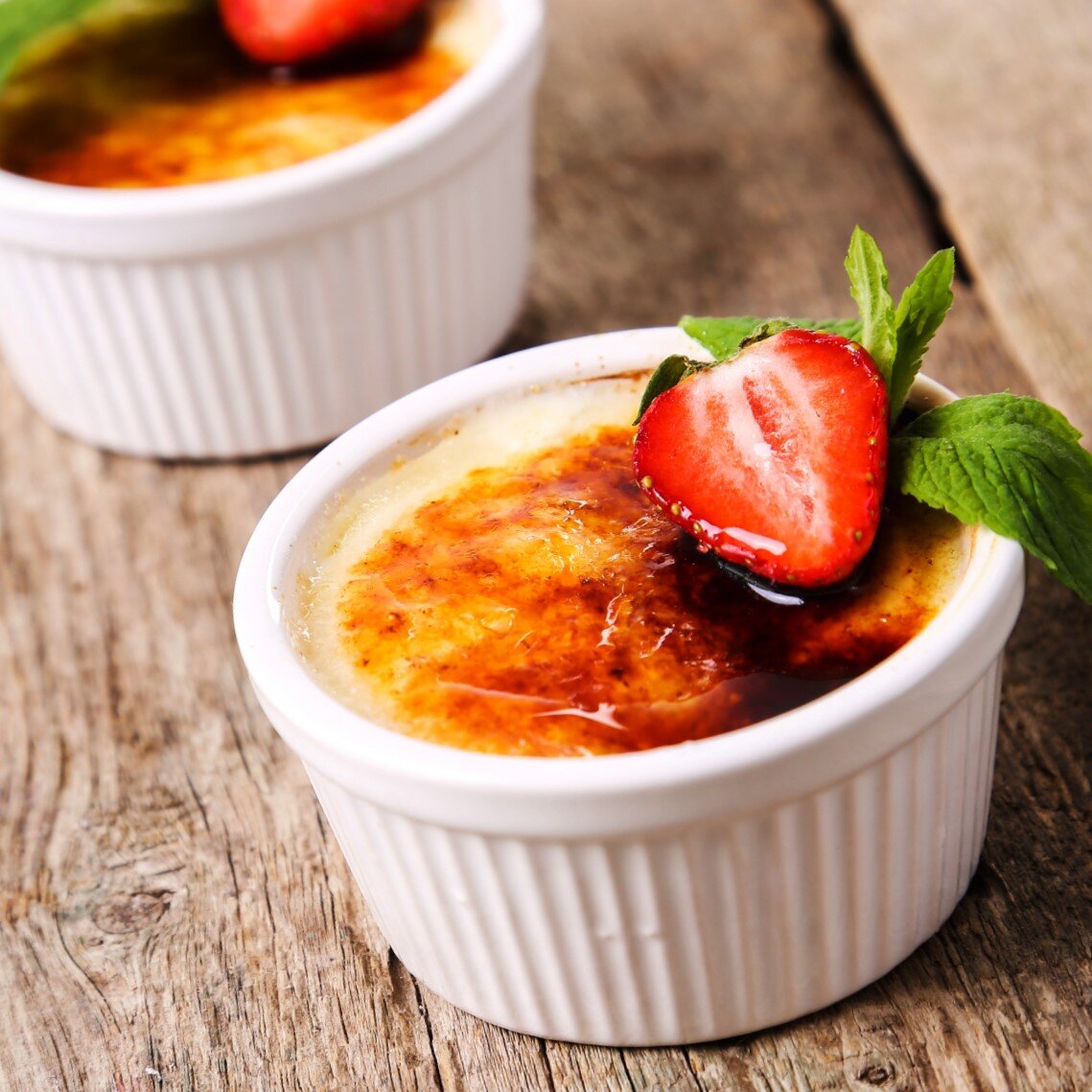 Перед подачей добавьте по 3 ложки клубничного джема в каждую креманку и украсьте свежей мятой. Нежный десерт готов к дегустации, пора удивить своих гостей!