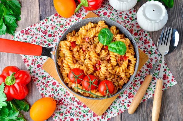 На поиски быстрого и сытного ужина, который понравится всей семье? Паста с фаршем и болгарским перцем станет отличным выбором. Это универсальное блюдо не только легко готовится, но и займет всего полчаса вашего времени.