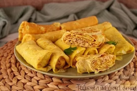 - Яичные блинчики с фаршем и сыром – эти тонкие блинчики с мясными начинками и плавленым сыром порадуют всех любителей интересных блюд.