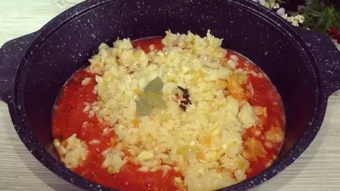 Для начала овощи лучше измельчить: либо прокрутить через мясорубку, либо воспользоваться блендером. Лук, перец, чеснок и яблоки смешиваются в кастрюле, затем добавляются помидоры. Специи, соль и сахар добавляются к овощной массе.