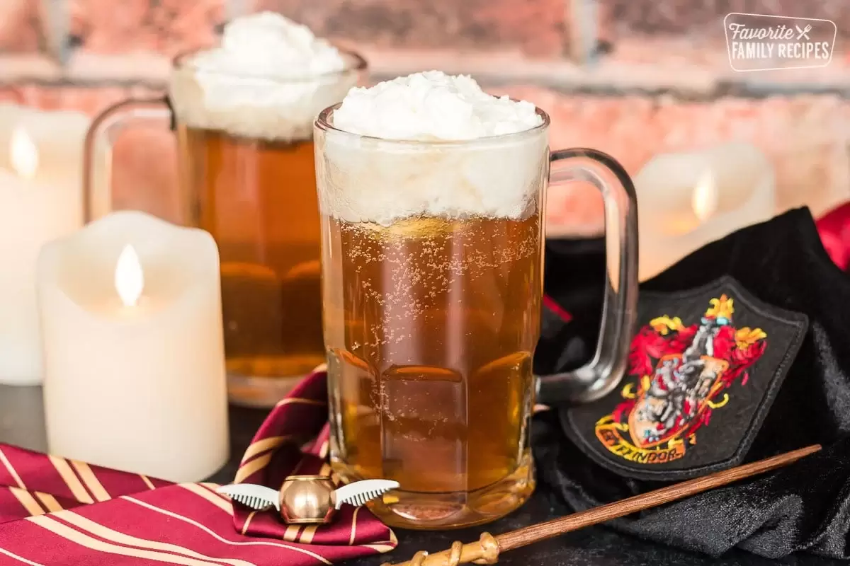 - Сливочное пиво (Butterbeer): этот напиток славится своим сладким, сливочным вкусом с легкой пряной ноткой. Его подают теплым или холодным и он отлично подходит для поднятия настроения после изнурительных занятий.