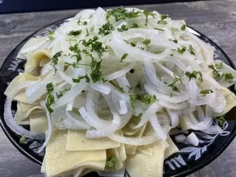 - Лапша для бешбармака — 400 г;