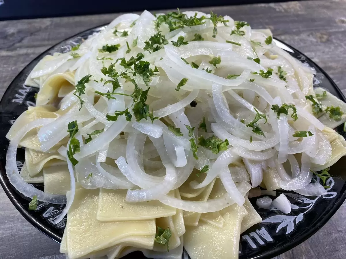 Это традиционное казахское лакомство отлично подходит в качестве сытного угощения. Когда дети были маленькими, они с увлечением называли его "разборные пельмени" — в нем действительно можно найти все: и мясо, и тесто, и лук. Неправильно говорить, что бешбармак не имеет общего с привычными пельменями!