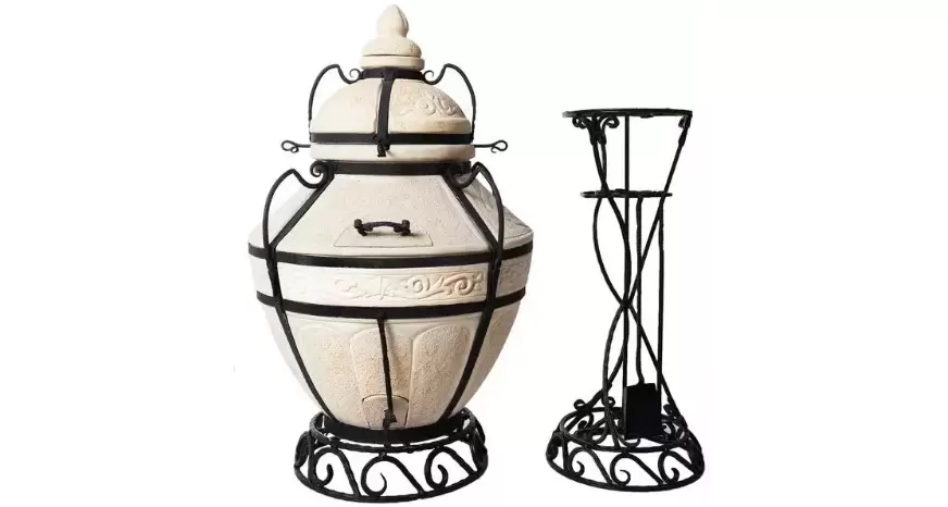 Переносной тандыр "Аладдин" является настоящим произведением кулинарного искусства. Изготовленный из светлой термостойкой шамотной глины и выполненный в форме амфоры, этот тандыр оптимально распределяет тепло, позволяя пище равномерно прогреваться. Блюда сохраняют свою сочность и полезные свойства, а толстые стенки тандыра обеспечивают долгое удержание тепла. Благодаря данному устройству можно эффективно готовить несколько блюд одновременно. Широкая горловина делает его идеальным для выпекания лепешек и размещения объемного казана, а вертикальная загрузка позволяет без труда запекать шашлыки и бараньи ноги.