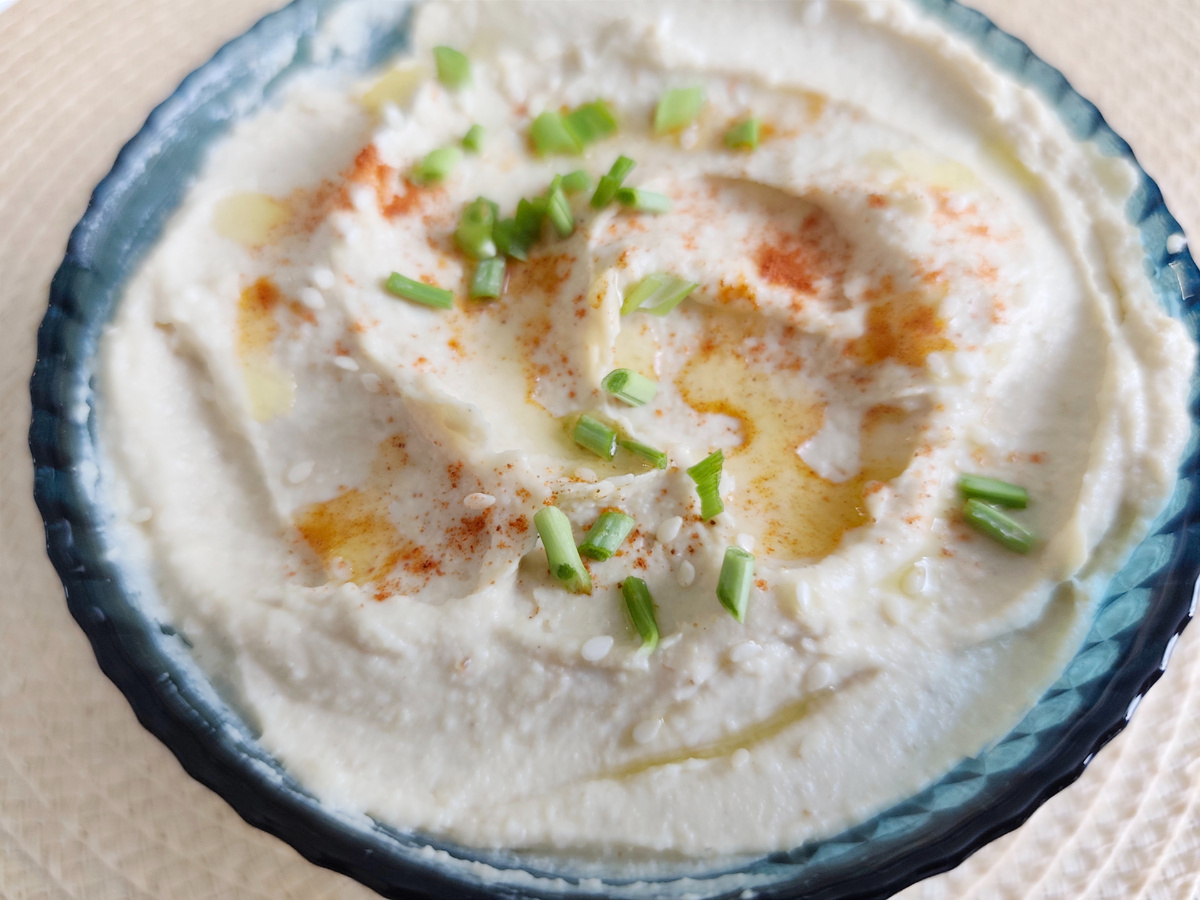 После этого в массу добавляют лимонный сок, тахини, оливковое масло и тщательно взбивают блендером до однородной кремовой консистенции. Для украшения можно использовать паприку и зелень.