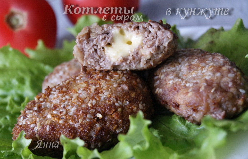 Далее сыр нарезается на небольшие брусочки – именно он придаст котлетам уникальный вкус. После этого начинается процесс лепки: сформируйте из мясной массы небольшие лепешечки, положите в центр брусочек сыра и аккуратно закройте края. Таким образом, сыр останется внутри и расплавится во время жарки.