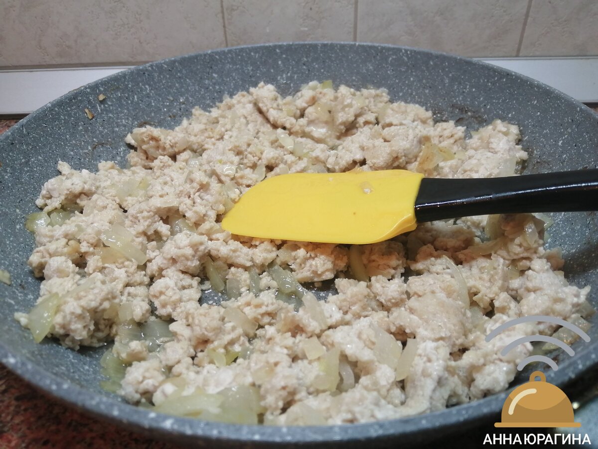Первым шагом следует обжарить фарш с нарезанным луком на сковороде до золотистого цвета. Затем подготовьте форму для запекания, выкладывая в нее спагетти. Лучше всего использовать пасту средней толщины, чтобы они не слишком разварились в процессе.