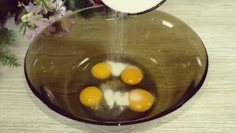 Для начала яйца необходимо взбить с сахаром и щепоткой соли. Удобнее использовать миксер для достижения нужной пышности.
