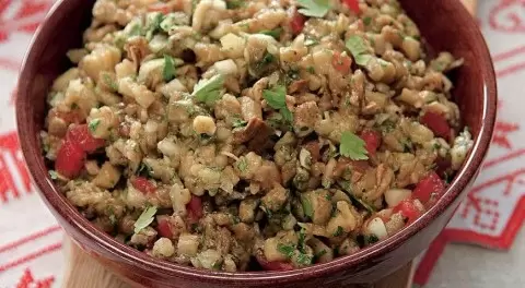 Чтобы самостоятельно приготовить баклажановую икру с кусочками, следуйте этому рецепту: