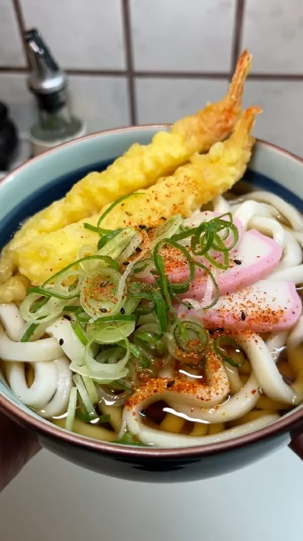 Процесс очень простой. Сначала подготавливается бульон из соуса Цую, который быстро закипает, создавая основу для лапши. Как только удон будет готов, его выкладывают в тарелку, заливают горячим бульоном и добавляют подготовленные ингредиенты: темпуру, нарезанный зеленый лук и камабоко. Для завершения можно посыпать скоринкой из перцев.