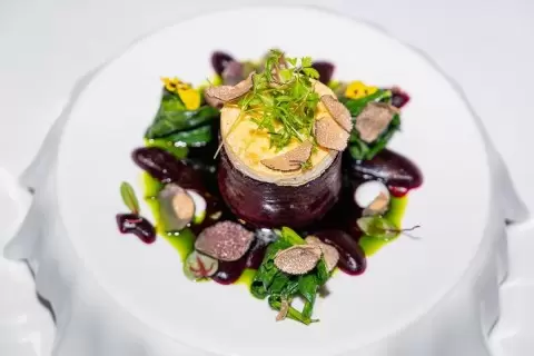 Блюдо: свекла «Россини» с черным трюфелем и миндальным соусом