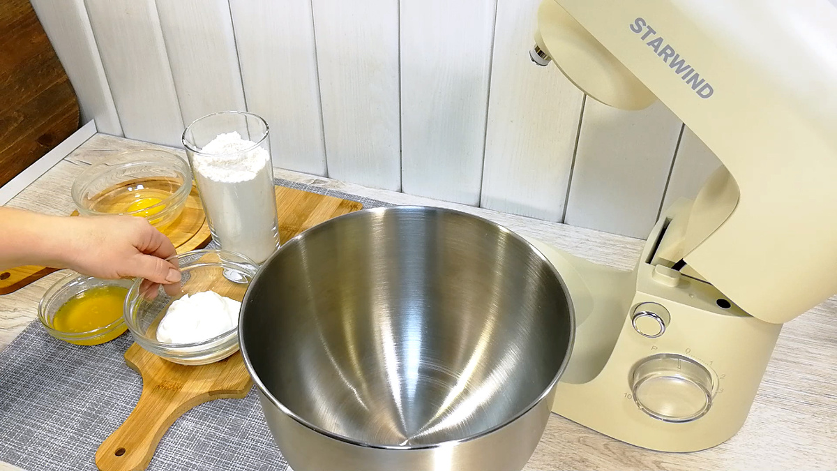 Комбинируйте сметану, яйцо, сливочное масло, соль и сахар. Постепенно всыпайте муку с разрыхлителем, замешивая мягкое и эластичное тесто. Упакуйте его в пленку и оставьте в холодильнике на 30 минут.